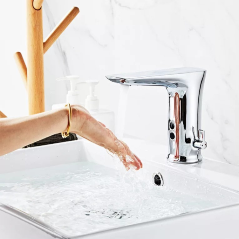 Mozgásérzékelős infrás mosdó csaptelep. Szenzoros csaptelep, mely akkor indul el amikor kezünket behelyezzük alá. Így igen víztakarékosnak és higénikusnak mondható, hiszen koszos kézzel nem szükséges hozzáérni a csaptelephez. Infrás hideg-melegvizes egyk