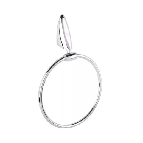 Sárgaréz anyagból készült falra szerelhető kerek törölközőtartó. Króm színű kéztörlőtartó karika.