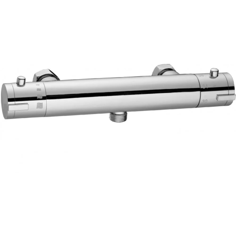 Termosztátos zuhany csaptelep fali kétlyuku telepités sárgaréz alapanyag króm kivitel króm takartó rózsával ideális müködési hőmérséklet 38 c müanyag foganytyuk kerámia betéttel szennyszürő betéttel visszacsapó szelepekkel