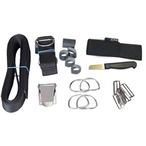 A csomag tartalmazza:- 4 m-es szíj lyukakkal,- kés védőlappal,- rozsdamentes acél csat,- gumi pántok (4 db keskeny, 1 db széles)... A csomag tartalmazza: - 4 m-es szíj lyukakkal, - kés védőlappal, - rozsdamentes acél csat, - gumi pántok (4 db keskeny,