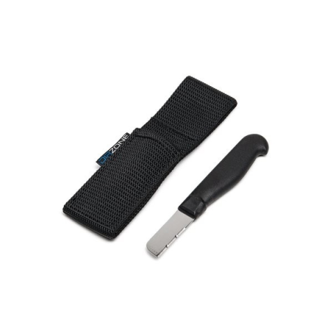 Fűzhető zseb poliamid szíjból, rozsdamentes acél késsel. Fűzhető zseb poliamid szíjból, rozsdamentes acél késsel. A rozsdamentes acél pengével rendelkező késeket minden sós vízi használat előtt, olajjal, vagy szilikonnal kell kezelni. Minden merülés