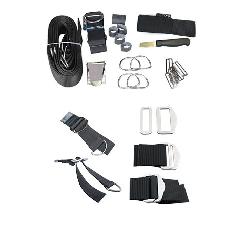 Quick Fix csatos heveder szett kompletten! A csomag tartalma: 4 m-es heveder kés - tokkal rozsdamentes acél csat gumiszalag (4x keskeny, 1x széles) ágyék heveder egy integrált D-gyűrűvel 2x D-gyűrű kanyar 2x normál D-gyűrű 5x stopper 2x S-S csat Quick