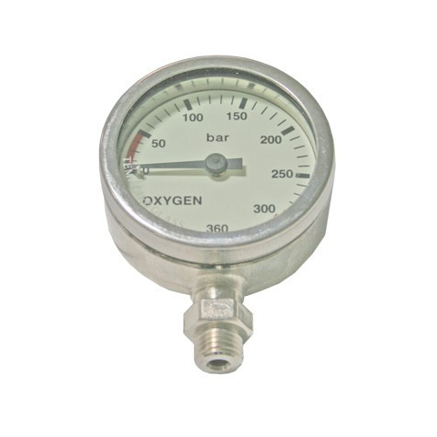 Kiváló minőségű sárgaréz nyomásmérő, különösen jó alkalmazható fő, vagy stage palackhoz. Szinoptikus tárcsa skála 360 bar-ig. Jelölten akár 100%-os oxigénhasználatra is alkalmas. Viton O-gyűrűkkel ellátott forgó, tartozék. Króm bevonattal ellátott típ