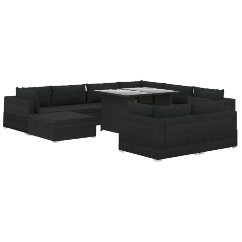 Discontmania VID 10 részes fekete polyrattan kerti bútorszett párnákkal kerti bútor termékleírás
