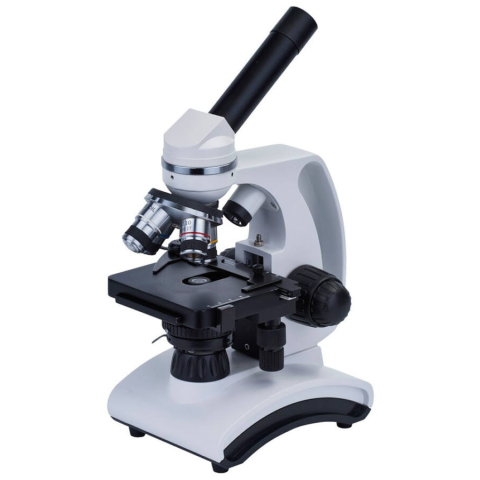 Akromatikus. Megdöntött fejrész, finomfókuszálás, Abbe-kondenzor, LED-világítás. Nagyítás: 40x–1000x. 5 megapixeles digitális kamera, a készlet része.