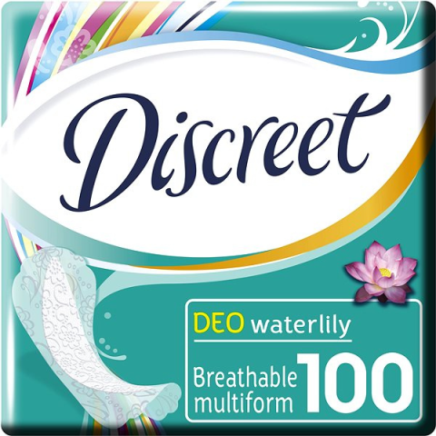 Tisztasági betét - használható gyenge menstruáció esetén, ajánlott nappali használatra, rögzítése ragasztófelülettel, szárny nélküli, illatosított, légáteresztő és anatómiailag formázott, 100 darabos csomag DISCREET Multiform Waterlily tisztasági betétek, 100 dbBizonyos napokon extra védelemre lehet szükségedA DISCREET Multiform Waterlily tisztasági betétek ideális választás a mindennapi védelemhez. Az i