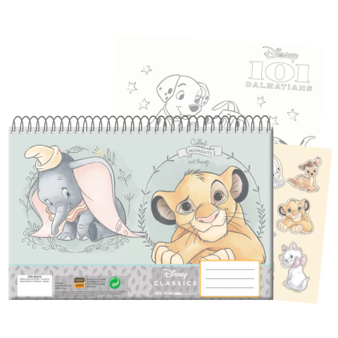 Disney Classic A/4 spirál vázlatfüzet 40 lapos matricával 1 ív matricával és 3 db színezhető képpel! Méret: A/4 (23x33cm)