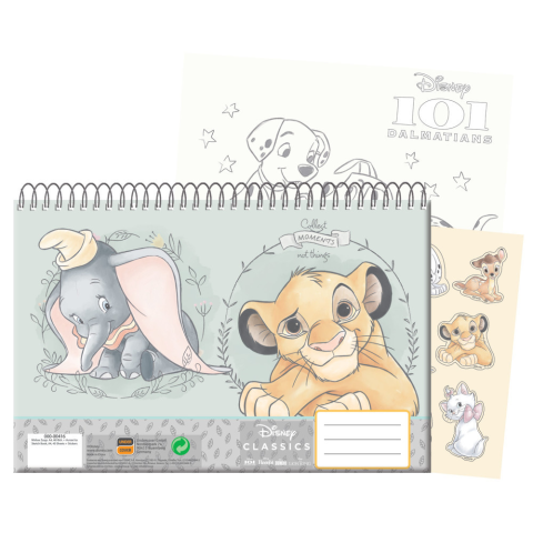 Disney Classic spirál vázlatfüzet, 40 lapos 1 ív matricával és 3 db színezhető képpel! Méret: A/4 (23x33cm)