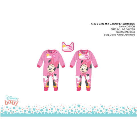 1 kép Disney Disney Minnie egér baba rugdalózó előkével - rózsaszín-piros - 3-6 hónapos babának