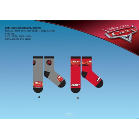 Gyerek pamut bokazokni - 4 pár - Disney Verdák - szürke-piros - 27-30