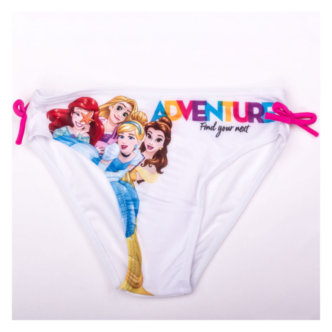 Disney Princess, Disney Hercegnők fürdőruha alsó kislányoknak, oldalán masnival díszítve. Kellemes viselet strandoláshoz, vízparti időtöltéshez. Anyagösszetétel: 80% poliészter, 20% elasztán Méret: 128