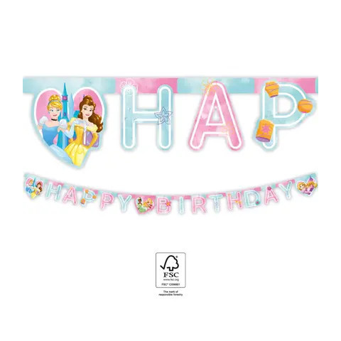 Disney Princess, Disney Hercegnők Happy Birthday felirat FSC Mérete: 2 m Anyaga: papír FSC (Forest Stewardship Council)