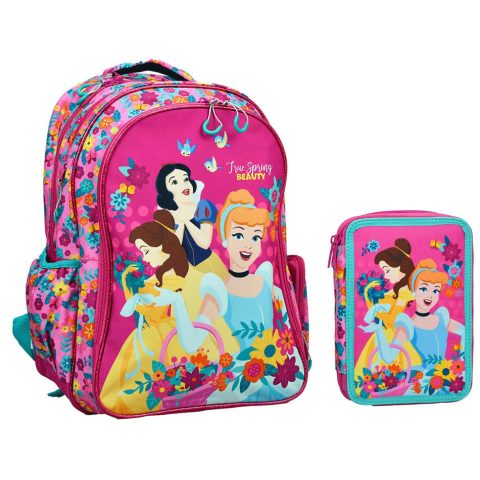 Disney Hercegnők táska és tolltartó szett Táska mérete: 43x30x17 cm Tolltartó mérete: 12,5x19,5x4,5 cm Tartalma: - 10 db színes ceruza - 10 db színes filctoll - 2 db grafitceruza - 1 db radír - 1 db vonalzó - 1 db hegyező - 1 db jegyzettömb - 1 db órar