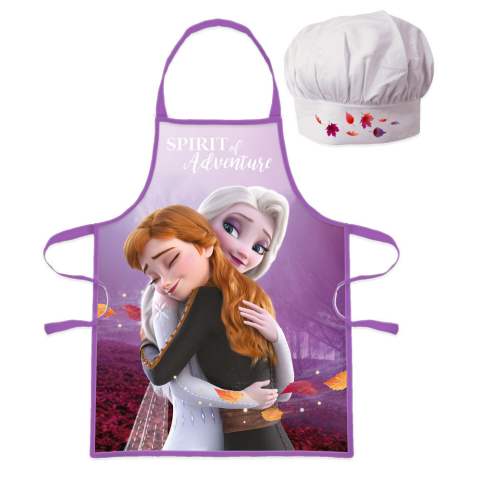 Disney Frozen, Jégvarázs Gyerek kötény 2 darabos szett Anyaga: 100% poliészter Szett tartalma: - 1 db kötény - 1 db kuktasapka Ajánlott 3-8 éves korig. Csomagolt termék, ajándéknak is kitűnő.