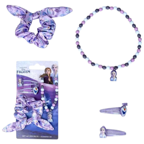 RAKTÁRRÓL AZONNAL! Disney Frozen, Jégvarázs Olaf and Elsa nyaklánc és hajkiegészítő szett Mérete: 11x20 cm Tartalma: - 1 db nyaklánc - 2 db hajcsat - 1 db hajgumi 3 éves kor alatt nem ajánlott!
