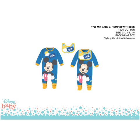 Disney Mickey egér baba rugdalózó előkével - középkék - 0-1 hónapos babának
