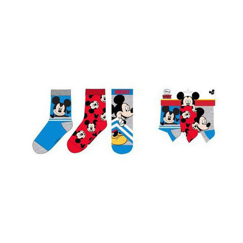 Disney Mickey Gyerek zokni Anyaga: 70% pamut, 18% poliészter, 10% poliamid , 2% elasztán. Az ár 3 pár zoknira vonatkozik! 3 féle minta! Méret: 23/26