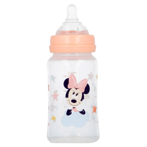 RAKTÁRRÓL AZONNAL! Disney Minnie baba cumisüveg 2,4 dl Anyaga: műanyag Mérete: 17x8,5 cm Ürtartalom: 2,4 dl (8 oz) BPA mentes Széles nyakú cumisüveg szilikon cumival 3 pozíciós.(0-6 hó, 3-6 hó, 6+ hó) A terméket mikrohullámú sütőben ne használjuk és ne ti