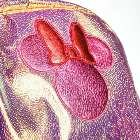 Disney Minnie divattáska, táska fényes, csillámos 36 cm Állítható vállpánt. Mérete: 36*28*10 cm Anyaga: 50% poliészter + 50% PVC