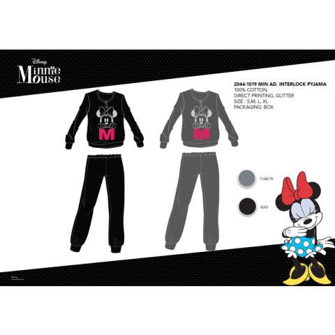 1 kép Disney Téli pamut interlock női pizsama - Disney Minnie egér - fekete - M