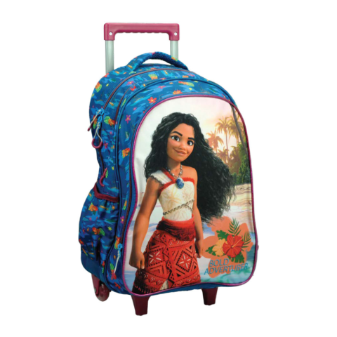 Disney Vaiana gurulós iskolatáska, táska Méret: 46x35x20 cm Pántjai állíthatóak. Gurulós kialakítás. Három nagy cipzáras tárolóval rendelkezik, illetve két oldalsó kis zsebbel.