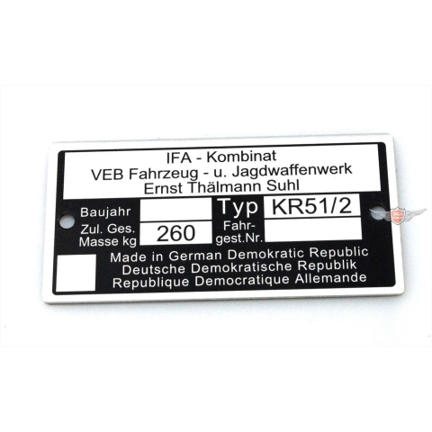 Diverse / Import Simson típustábla KR 51/2 mopedhez/mokickhoz