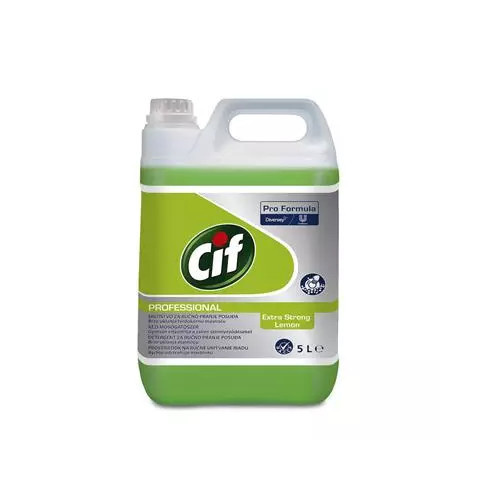 Cif® Professional Dishwash Extra StrongLemonFolyékony kézi mosogatószerTermékleírásA Cif Prof. Dishwash Extra Strong Lemon kellemes citromillatú folyékony kézi mosogatószer. Alkalmazható kézi mosogatáshoz és mosható felületek tisztításához. Tökéletesen el