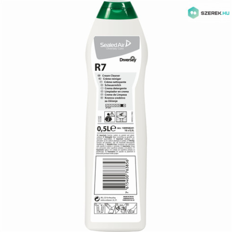 Cream R7 0,5L Folyékony súrolókrém TermékleírásAz R7 egy használatra kész, viszkózus, karcmentesen tisztító folyékony súrolószer, mely használható minden vízálló kemény felületen.Legfontosabb tulajdonságok· Karcmentesen tisztít· Ideális viszkozitásának k