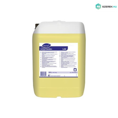 SUMA Combi+ LA6Őblítőszert is tartalmazó folyékony mosogatószerTermékleírásA Suma Combi + LA6 folyékony gépi mosogatószer és öblítőszer koncentrált kombinációja, amely kifejezetten úgy lett kifejlesztve, hogy 12nko vagy 215 ppm keménységű víz esetén eltáv