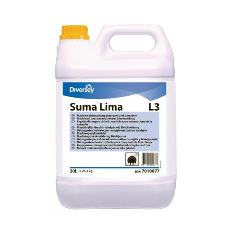 A Suma Lima L3 folyékony, klórtartalmú, gépi mosogatószer, mely különösen alkalmas közepesen kemény- és kemény vízhez. A Suma Lima L3 egy erősen lúgos, klórozott folyékony mosogatószer, amely alkalmasegy- és többtartályos mosogatógépek széles skálájára.