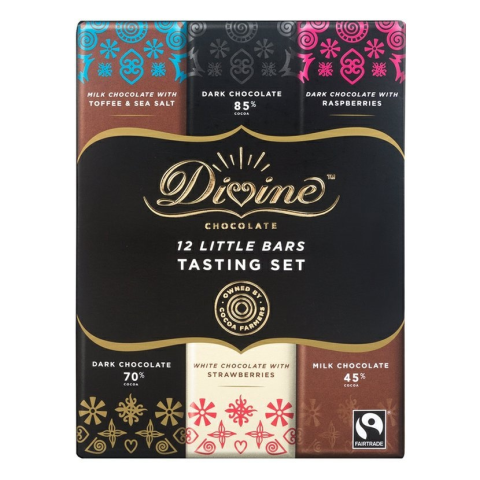1 kép Divine Chocolate Isteni ajándékcsomag 12 csokoládéból, 6 ízből, 180g