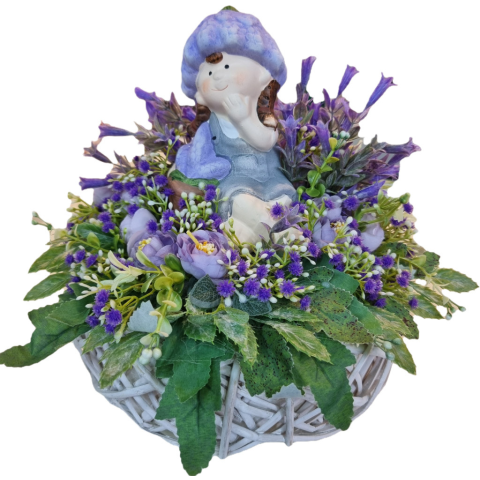 DIY Nyári asztaldísz levendulás kislánnyal dekorációs kellék 1 kép
