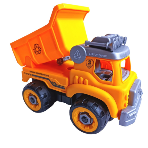 Dömper, mely több elemre szétszerelhető, majd ismét összerakható. Erős anyagból készült. Mérete: 20 x 11 x 11 cm. 3 éves kor felettieknek.