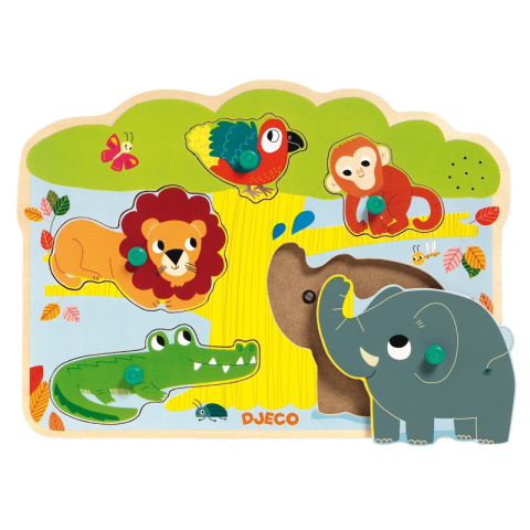 1 kép DJECO Djeco Formaillesztő, formaberakó - Felelgetős állatok kirakó - Sound Baobab