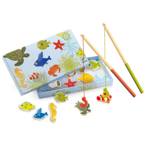 Horgász játék, kétszemélyes társasjáték 2 éves kortól. A társasjátékban bájos halacskákat kell kipecázni a mágneses bot segítségével. A különböző alakú és különböző színű halacskákon megfigyelhetőek az azonosságok és a különbségek, de felhasználhatók rajz