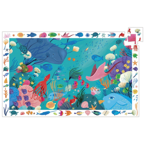 A Djeco Megfigyeltető puzzle – Tengerben egy 54 darabos, színes kirakós, ami a tenger varázslatos világát hozza el neked! Rakd ki a tengerfenék csodáit: a színes halakat, korallokat és vízi élőlényeket – mindezt egy izgalmas és fejlesztő puzzle segítségév