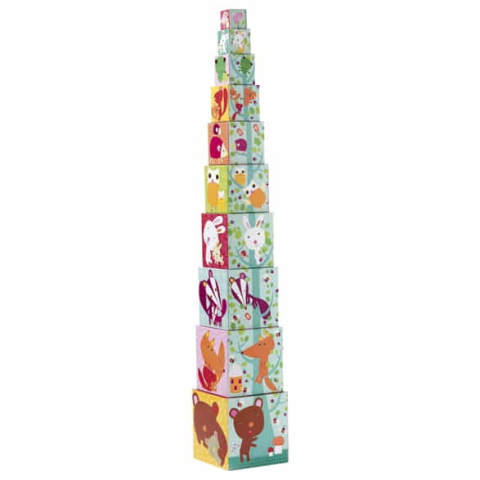 Djeco 10 forest blocks - Toronyépítő kocka, erdei állatok. Állattani és matematikai ismereteket bővítő építőjáték, melyben a gyermekek játszva tanulják meg a különböző állatok neveit és élőhelyeit, fejlesztik megfigyelőképességüket és megismerkednek a szá