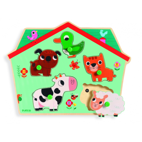 Igazán aranyos, egyszerű játék kisgyermekeknek. Ha a kisgyermek a megfelelő helyre teszi vissza, az állatfigura a rá jellemző hangot adja ki