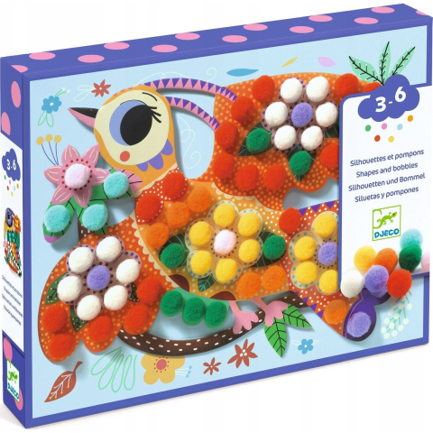 DJECO Kollázsok pompomokkal - Madarak (DJ00070) kreatív és készségfejlesztő árgrafikon