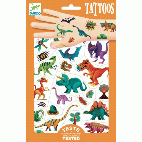 Minden ami dínó, tetováló matricákon. Minden ami dínó, tetováló matricákon. A dínók mesés bemutatása, ábrázolása kifejezetten a dínó rajongó gyermekek számára. Könnyen használhatóak, ezek az ideiglenes tetoválások előre kivágottak, és egy kis vízzel fe