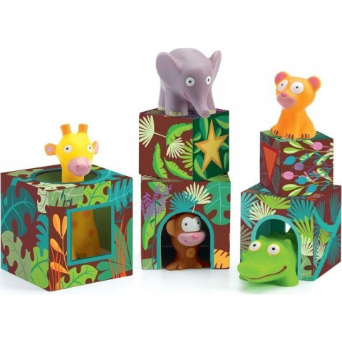 DJECO Toronyépítő - Maxi, Szavannai Állatok - Maxi Topanijungle (DJ09101) oktatójáték 1 kép