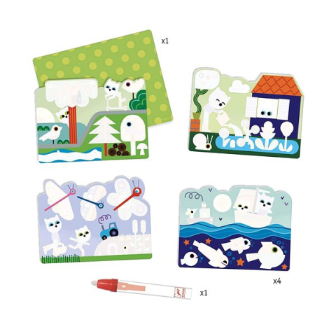 Kifestőkönyv - a készlet 4 db 21 × 26 cm-es képet és egy vízzel tölthető ceruzát tartalmaz, újrafelhasználható, 18 hónapos kortól. A Djeco vizes kifestőkönyve, a Cat Fun nem csak a gyerekeket szórakoztatja, de a szülők is imádni fogják. Megszabadulsz ugyanis a takarítástól. A vízfestő könyv 4 színezhető képből és egy vízzel töltö