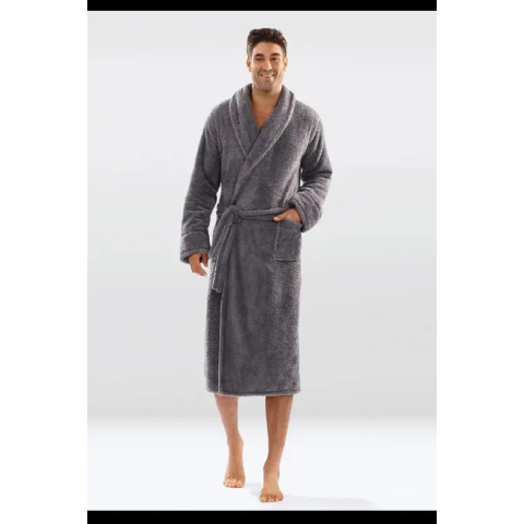 1 kép DKaren 130 férfi bolyhos fürdőköpeny, szürke XXL