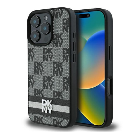 1 kép DKNY Checkered Pattern & Printed Stripes iPhone 16 Pro hátlap tok, fekete DKHCP16LPCPTSSK