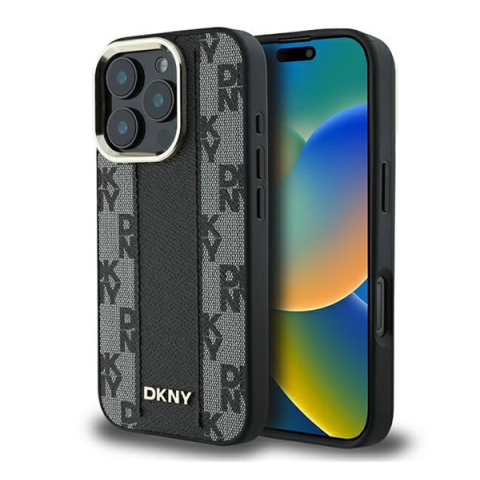 1 kép DKNY Checkered Pattern iPhone 16 Pro MagSafe hátlap tok, fekete DKHMP16LPCPVSLK
