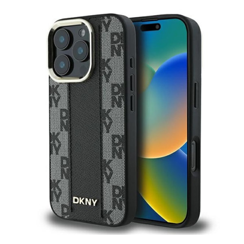 1 kép DKNY Checkered Pattern iPhone 16 Pro Max MagSafe hátlap tok, fekete DKHMP16XPCPVSLK