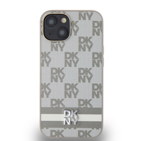 1 kép DKNY iPhone 14 kockás mintás csíkkal PU Bőr Telefon tok - Bézs (DKHCP14SPCPTSSE)