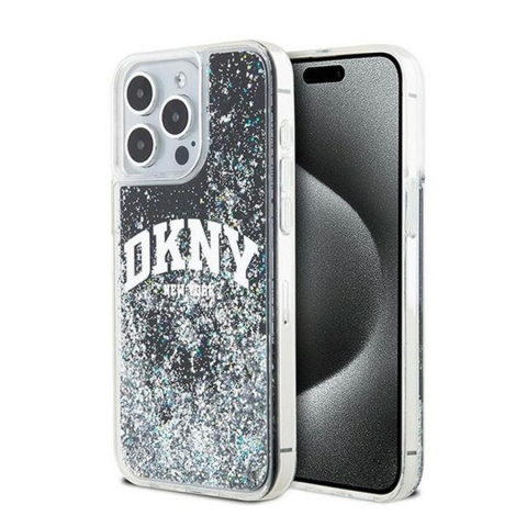 DKNY Liquid Glitter Arch Logo iPhone 14 Pro Max hátlap tok, fekete