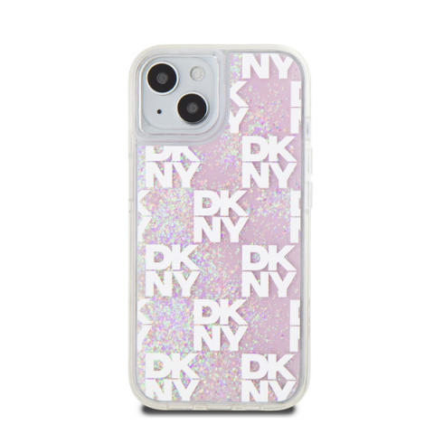 1 kép DKNY Liquid Glitter Checkered Pattern iPhone 15 hátlap tok, rózsaszín