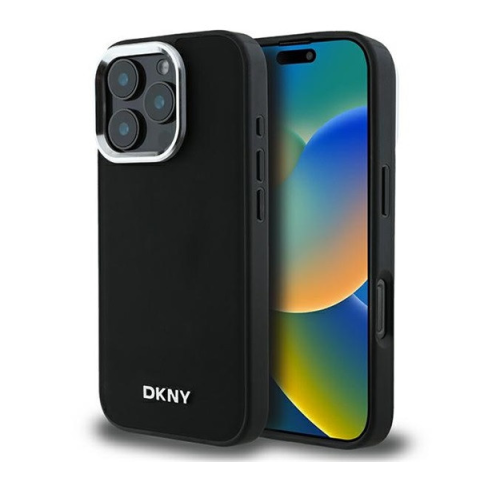 1 kép DKNY Plain Silver Logo iPhone 16 Pro MagSafe hátlap tok, fekete DKHMP16LPSCMCLK
